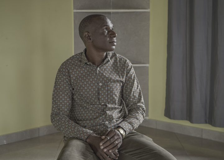 • Portrait of Bengaly Bourama who is seated, looking pensively to the right and has his hands in his lap.